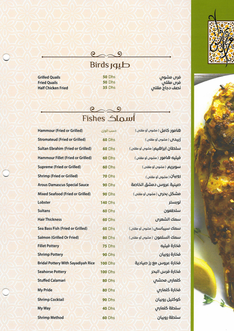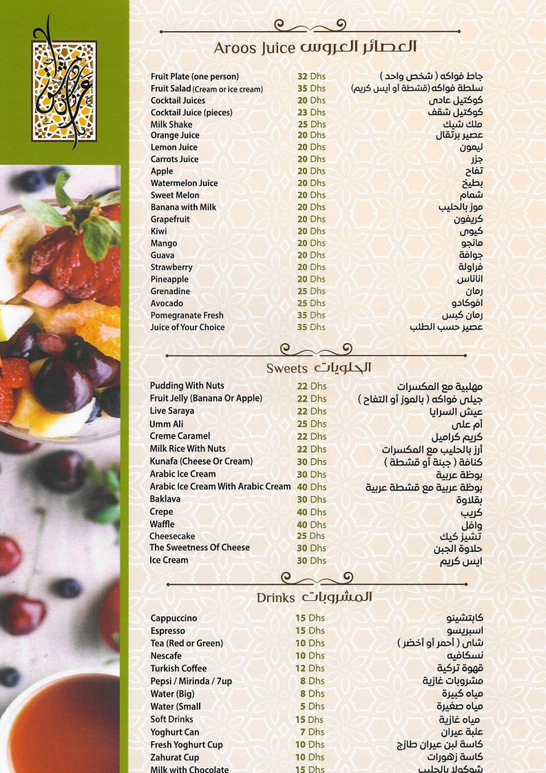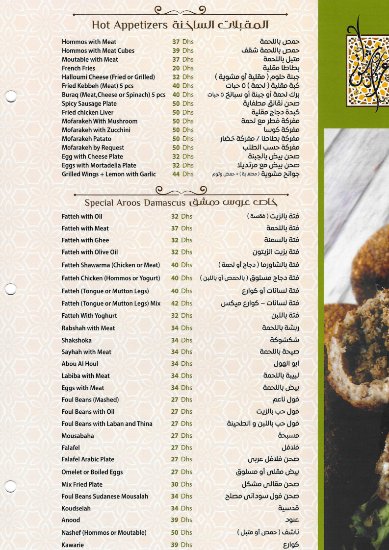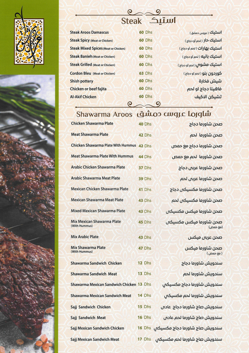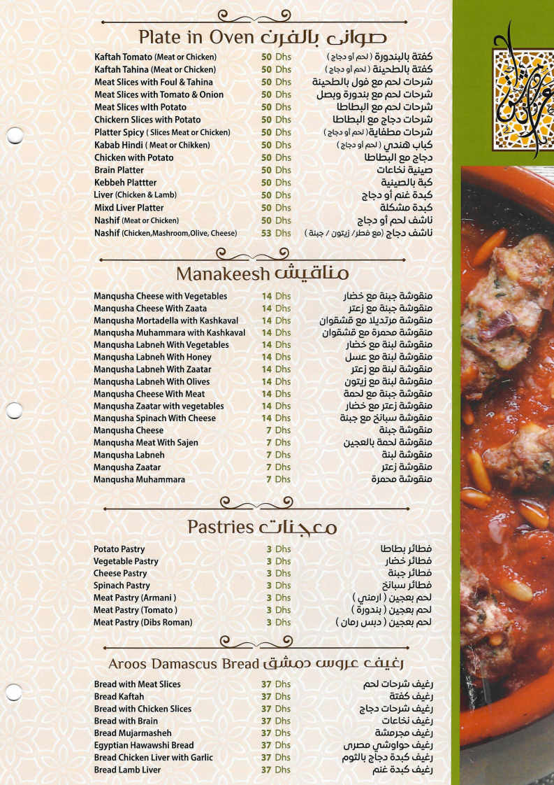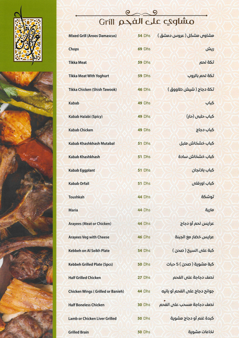 Dining here is a sensory journey that combines authentic tastes with generous portions and warm hospitality. Whether you crave classic mezze or crave the best shawarma in town, Aroos Damascus delivers quality that leaves a lasting impression. This menu is a must-try for lovers of genuine Syrian flavors in the UAE.